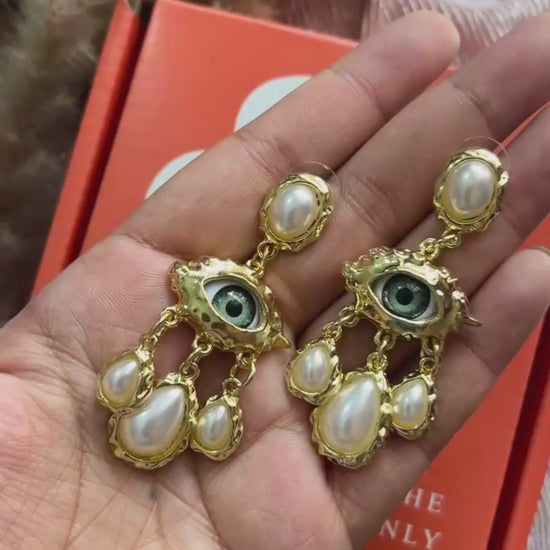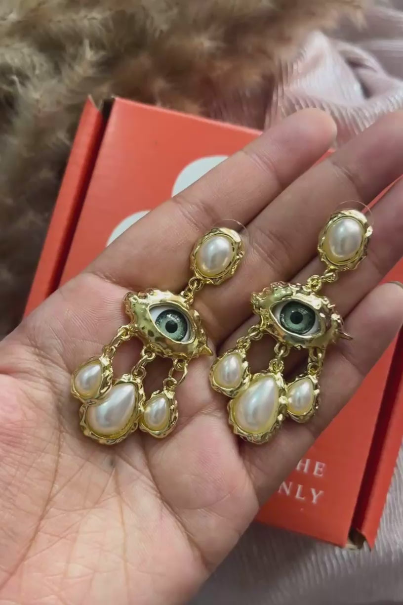 The Eye of Grace Earrings blend protection and poise in perfect harmony. Adorned with a delicate evil-eye motif surrounded by lustrous pearls, they radiate calm confidence and timeless charm. Each detail speaks of balance — where elegance meets intention, and beauty becomes a quiet form of strength.