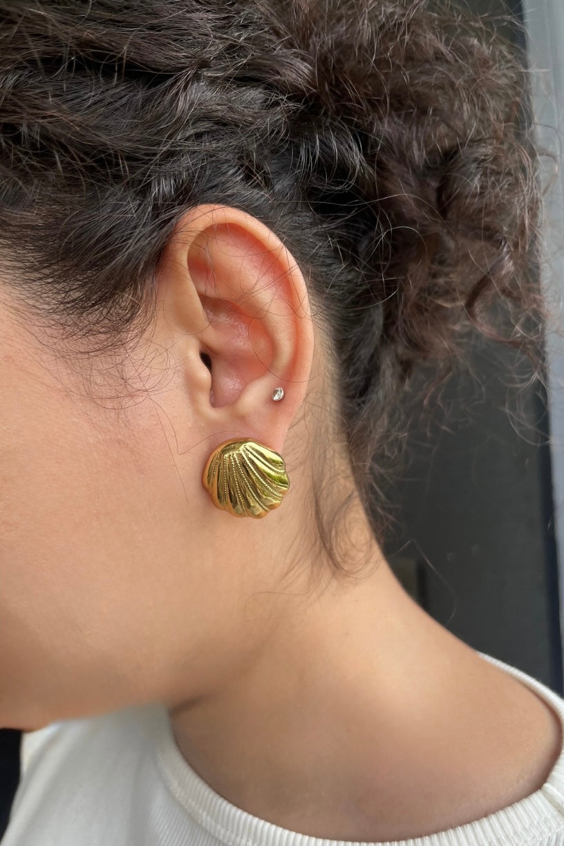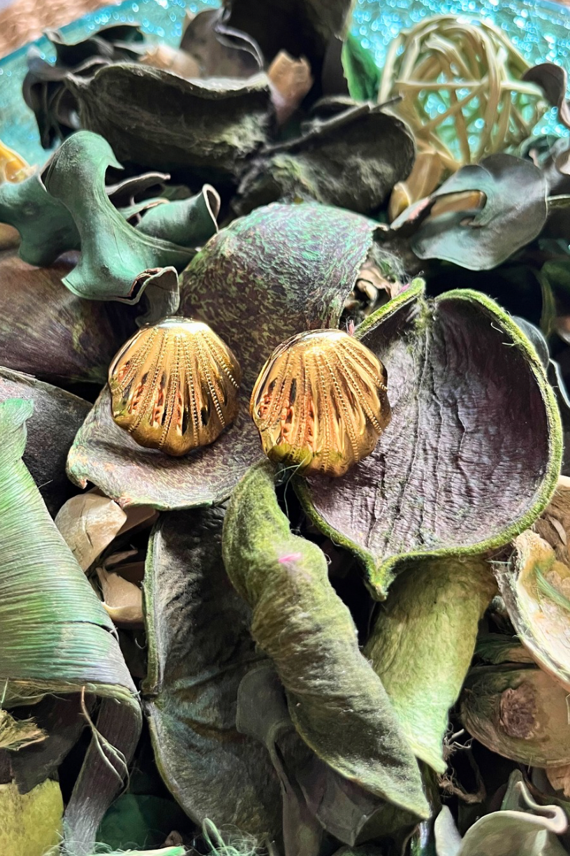 These shell-formed studs carry the rhythm of waves and whispers of faraway shores. Textured and radiant, they feel like a memory—of sun-warmed sand, wind in your hair, and the stillness only the sea can bring.
